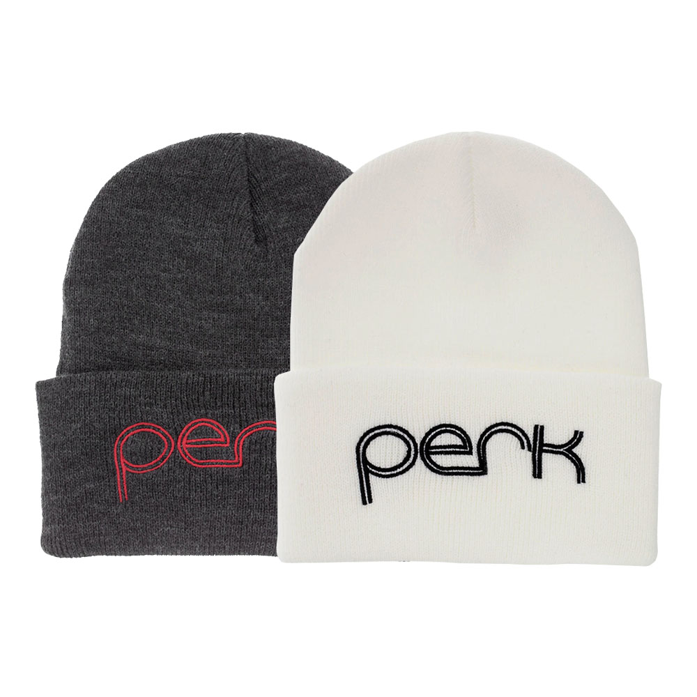 | | Let your head show what you would like in your tummy with Perk logo beanies. | | |